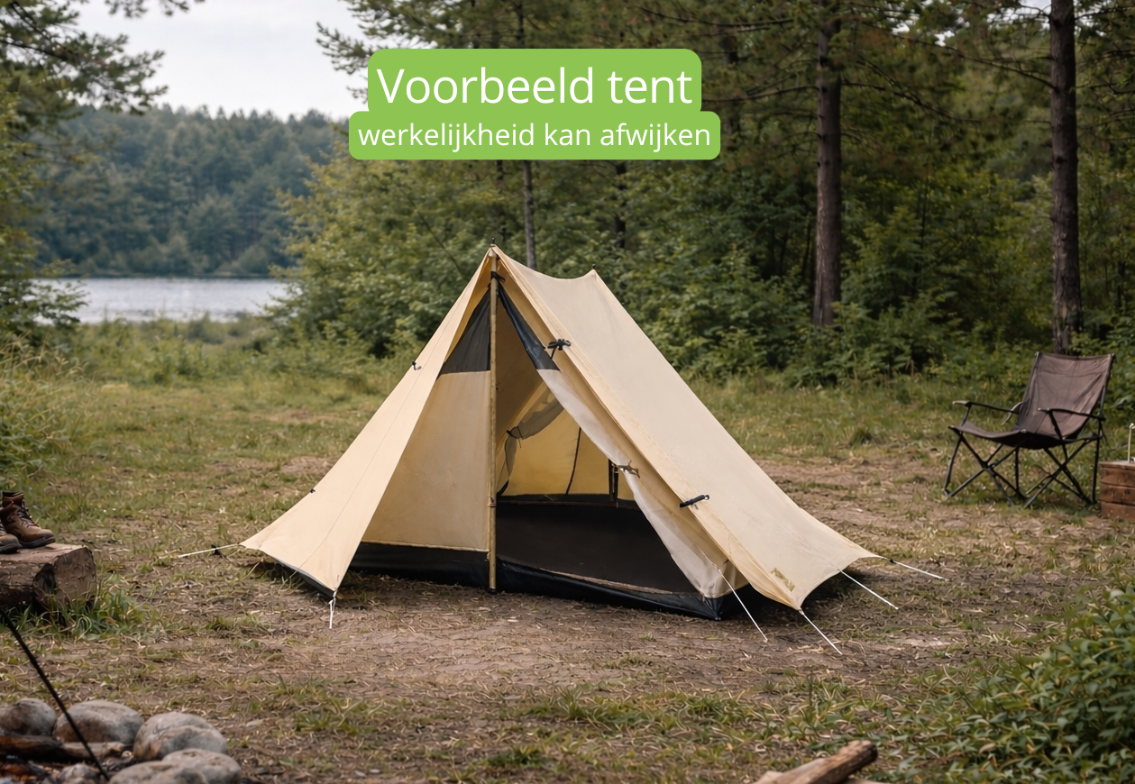 De tenten waar je in slaapt zijn geschikt voor twee personen, waarbij je je matjes of luchtbed kwijt kan en in de luifel je bagage, een weekendtas bij voorkeur.